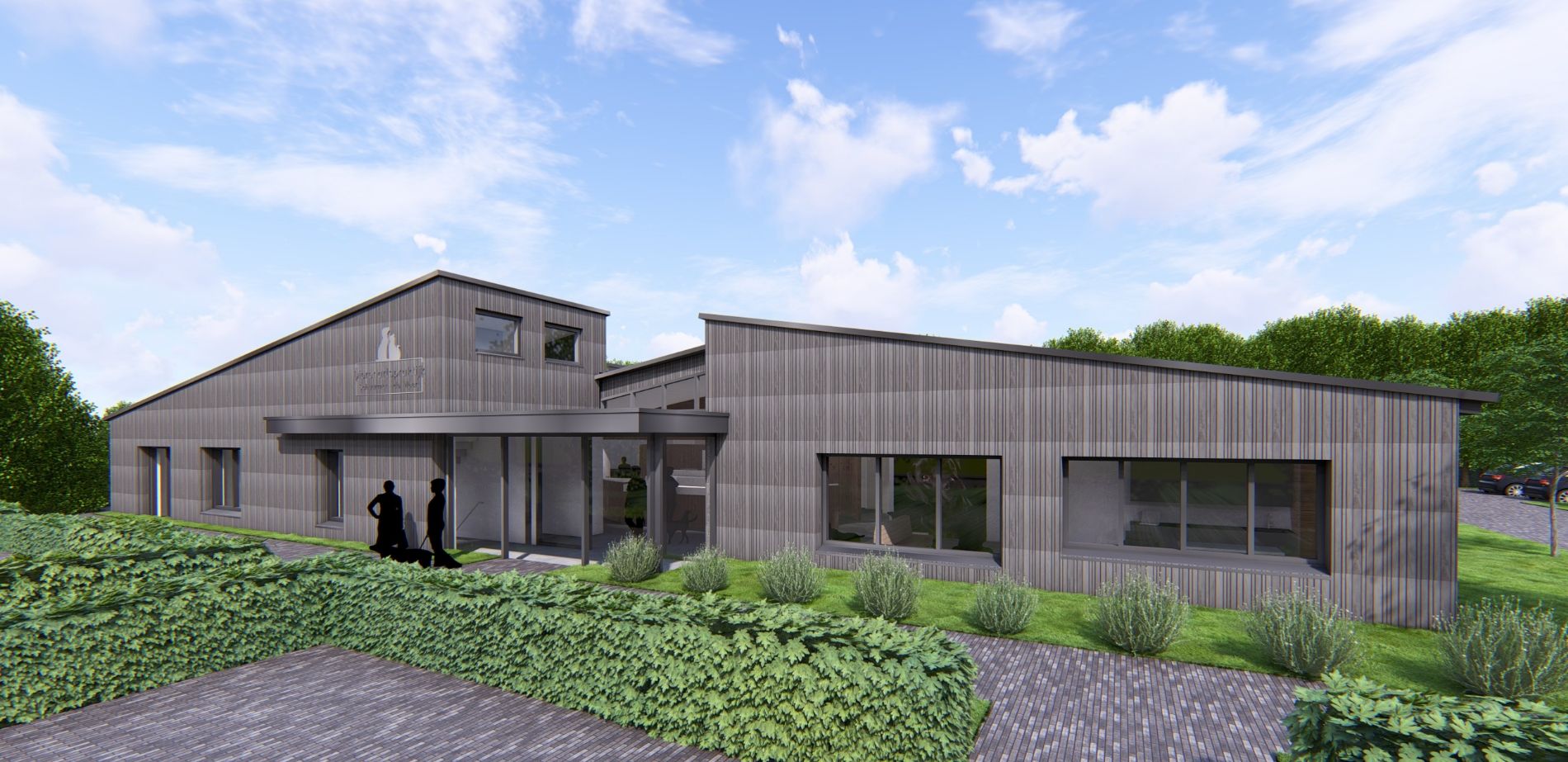 Samen met de nieuwe groene aankleding van het terrein krijgt het geheel een moderne en natuurlijke uitstraling.