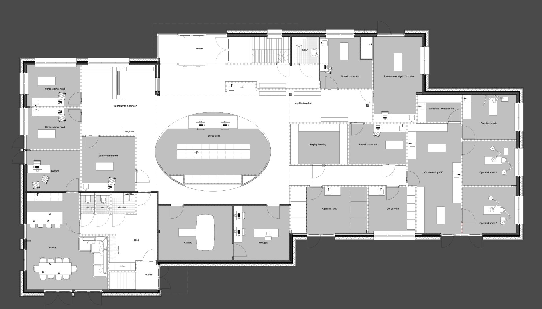 De indeling van het pand is volledig veranderd en heeft nu een 6-tal spreekkamers en o.a een 2-tal operatiekamers gekregen.